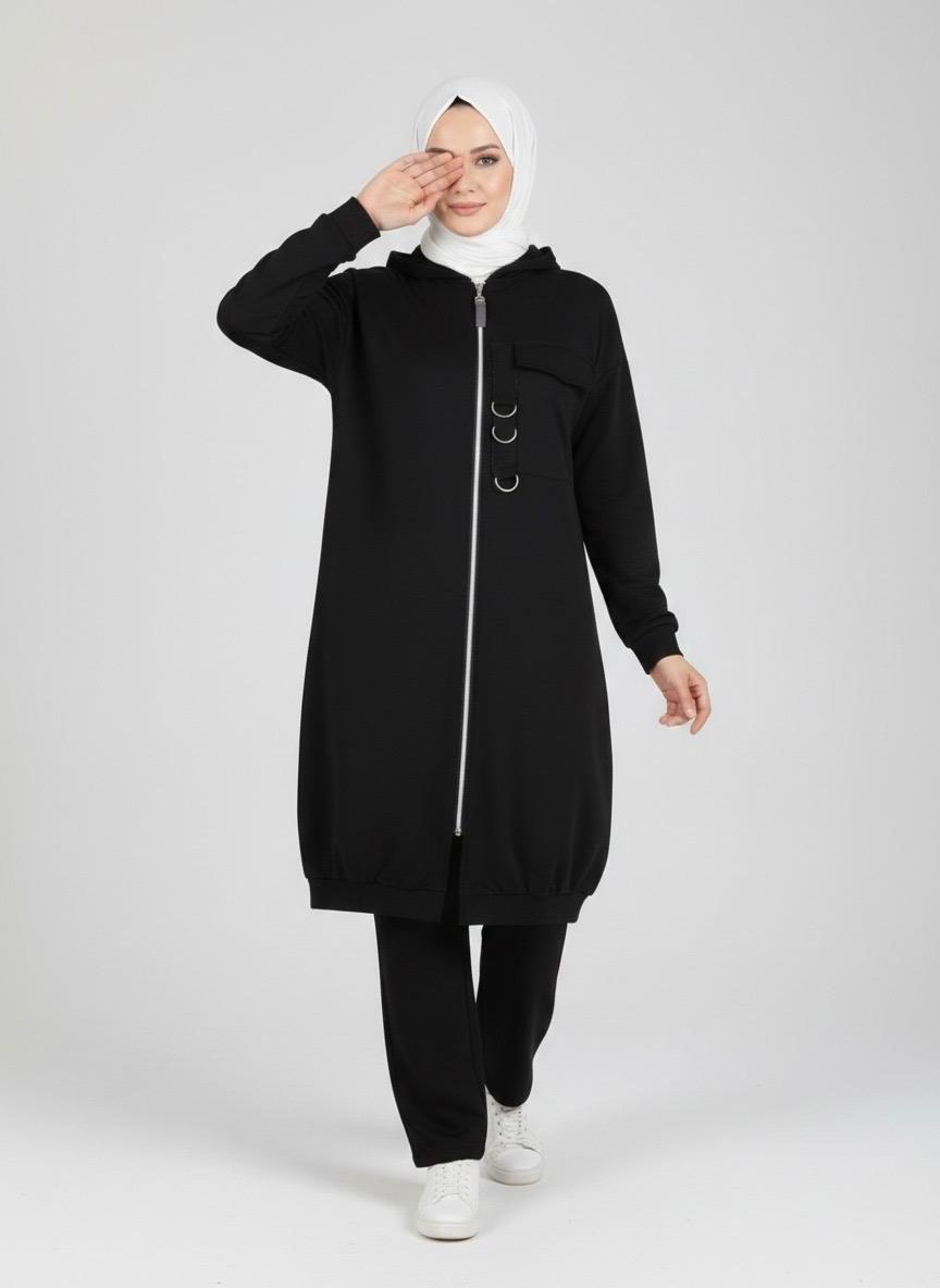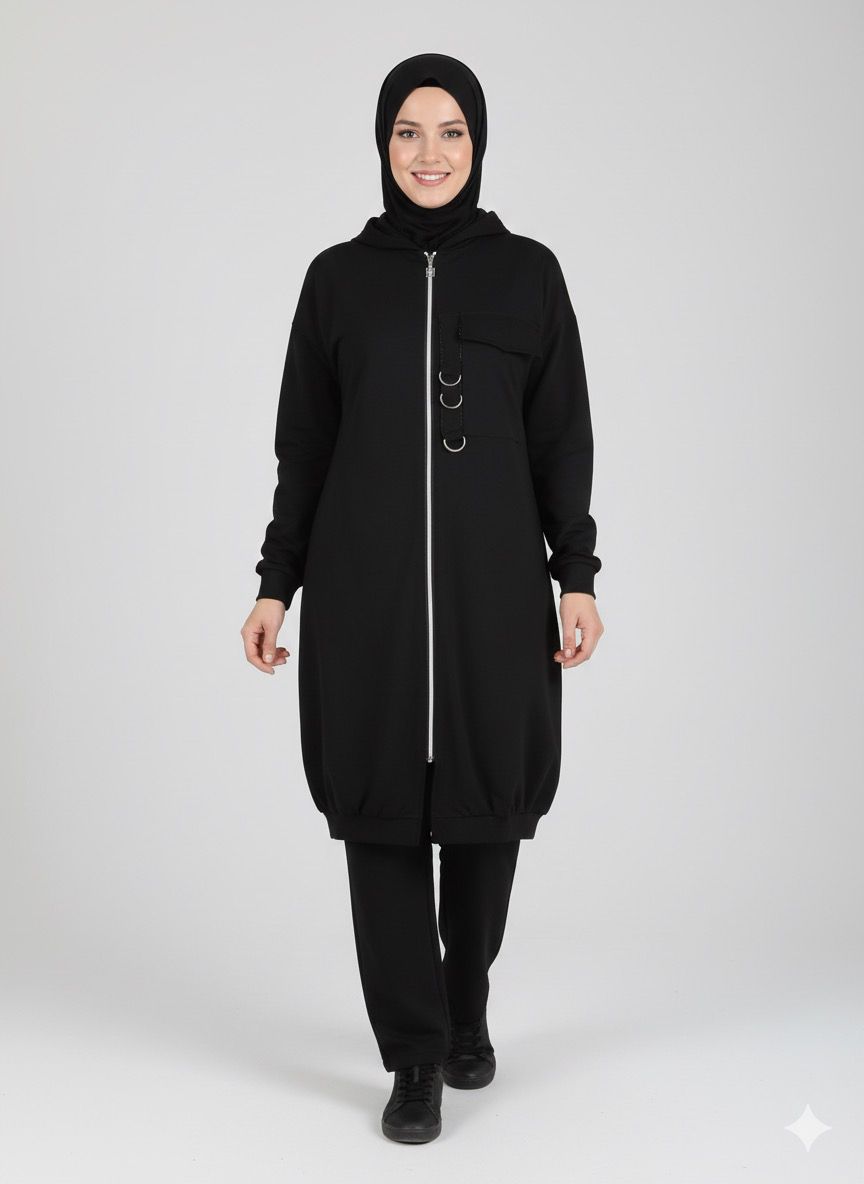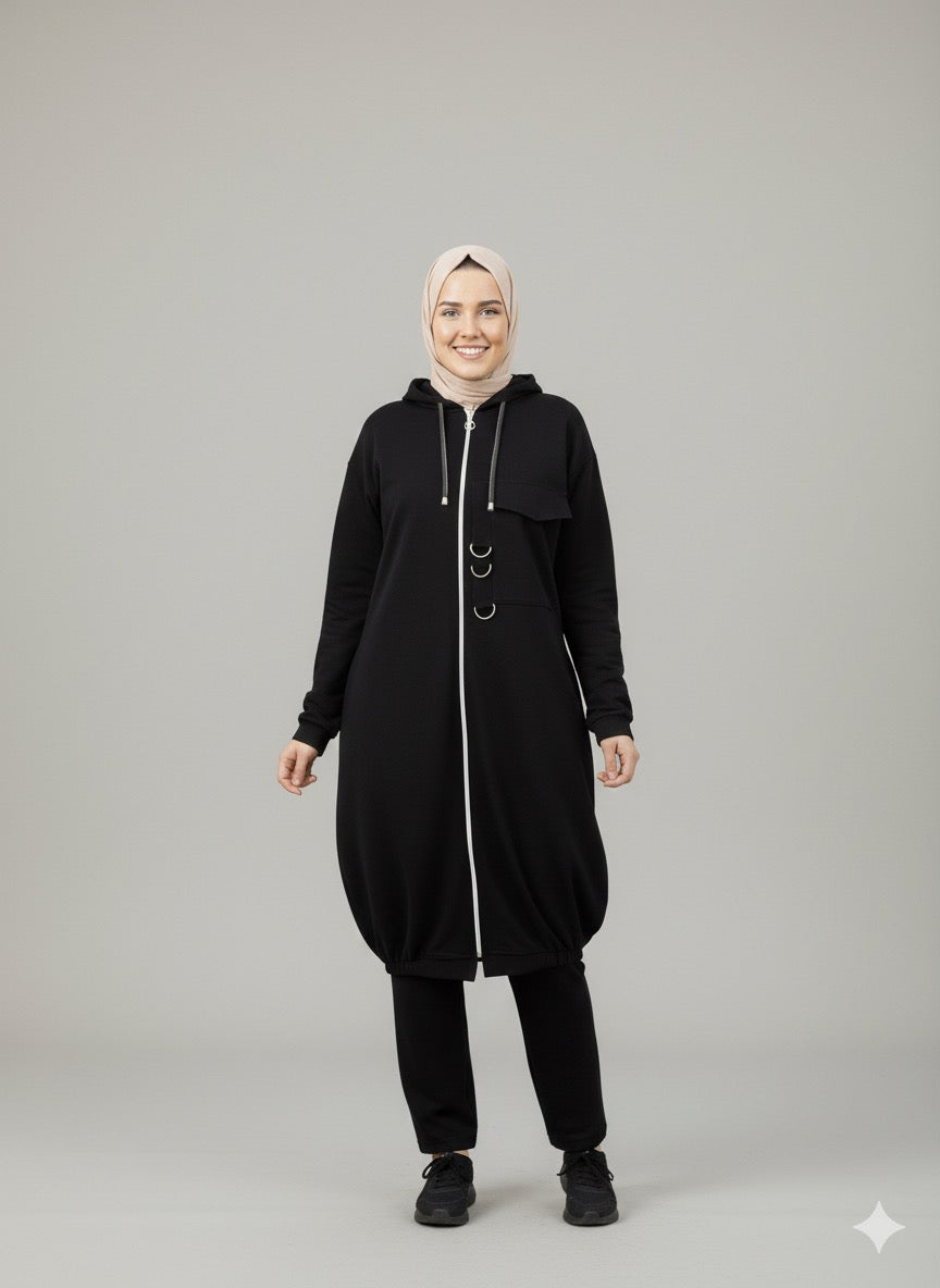 Ce survêtement femme hijab Noirine a été pensé pour toutes celles qui veulent rester élégantes tout en gardant leur confort et leur pudeur.